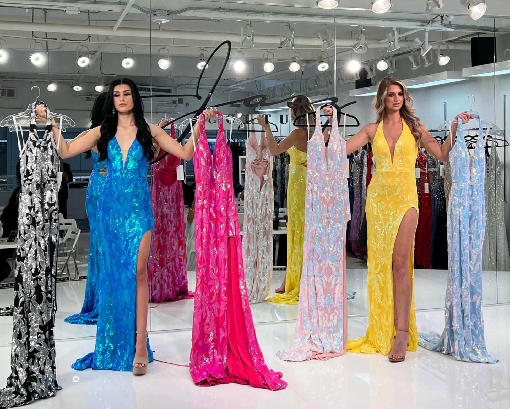Shop Lavender Formals for your next event! This beautiful hand made gown is used with stunning fabric and embellishments. Need help finding your size? Text STYLIST to 9255426101 and we will help you find the perfect dress.