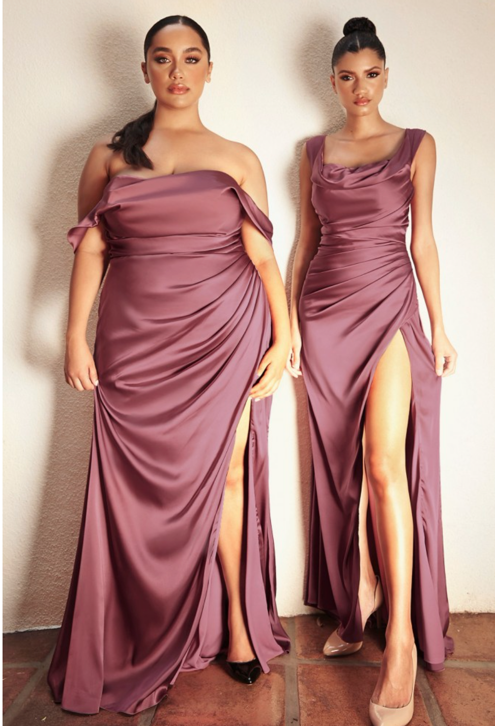Created for the modern and versatile bridesmaid, 7488 features a draped bodice that can be worn in three ways: off-shoulder, asymmetric neckline, and U-neckline. Draped pleats that are customizable cascade alongside the skirt that will drape beautifully on all body types. Rendered in fresh colors that are sensual and sophisticated, 7488 is a must-have for the bride to create a classy & elevated wedding story.