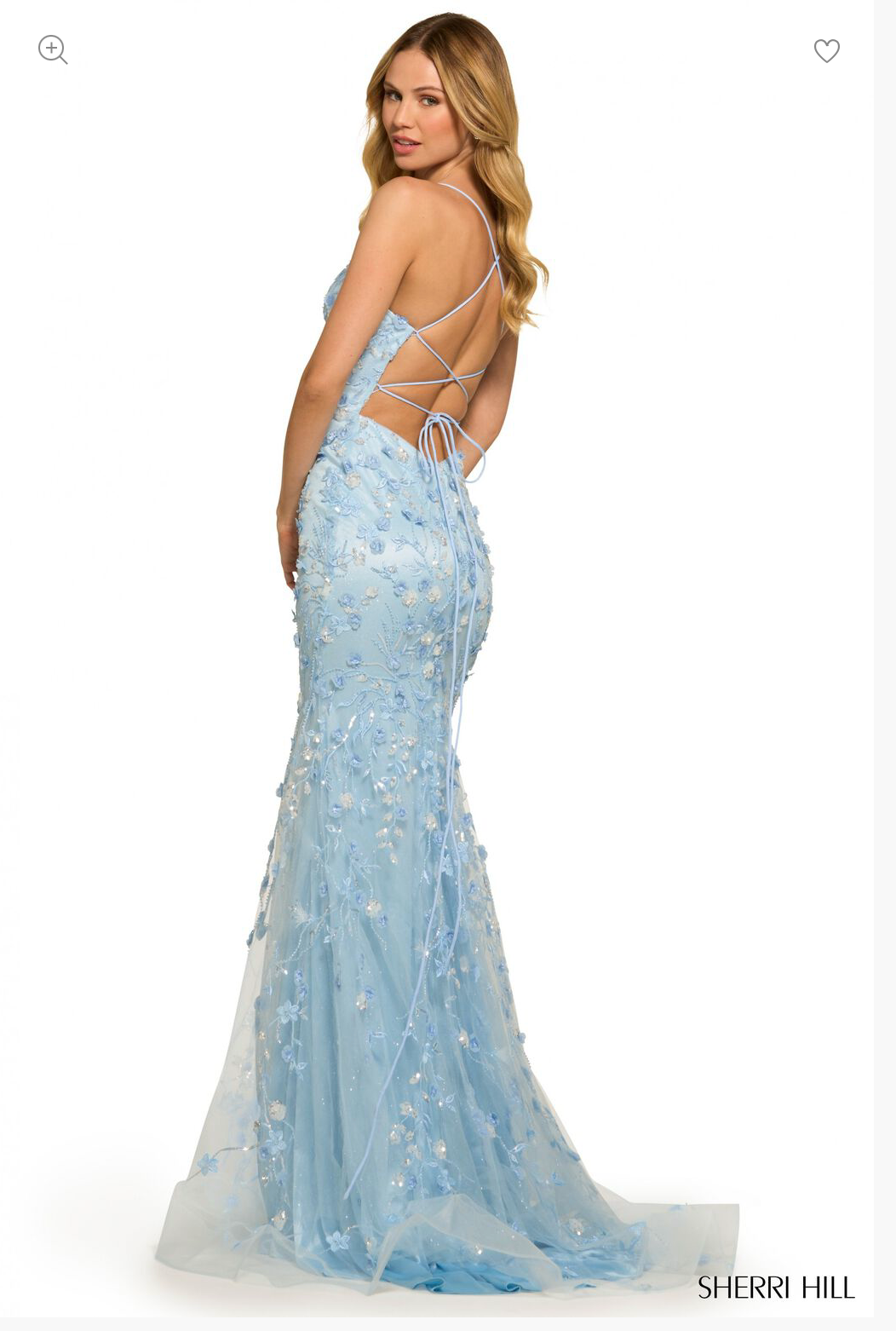 A fitted gown with sequin lace, a sweetheart neckline, and 3D flower details.